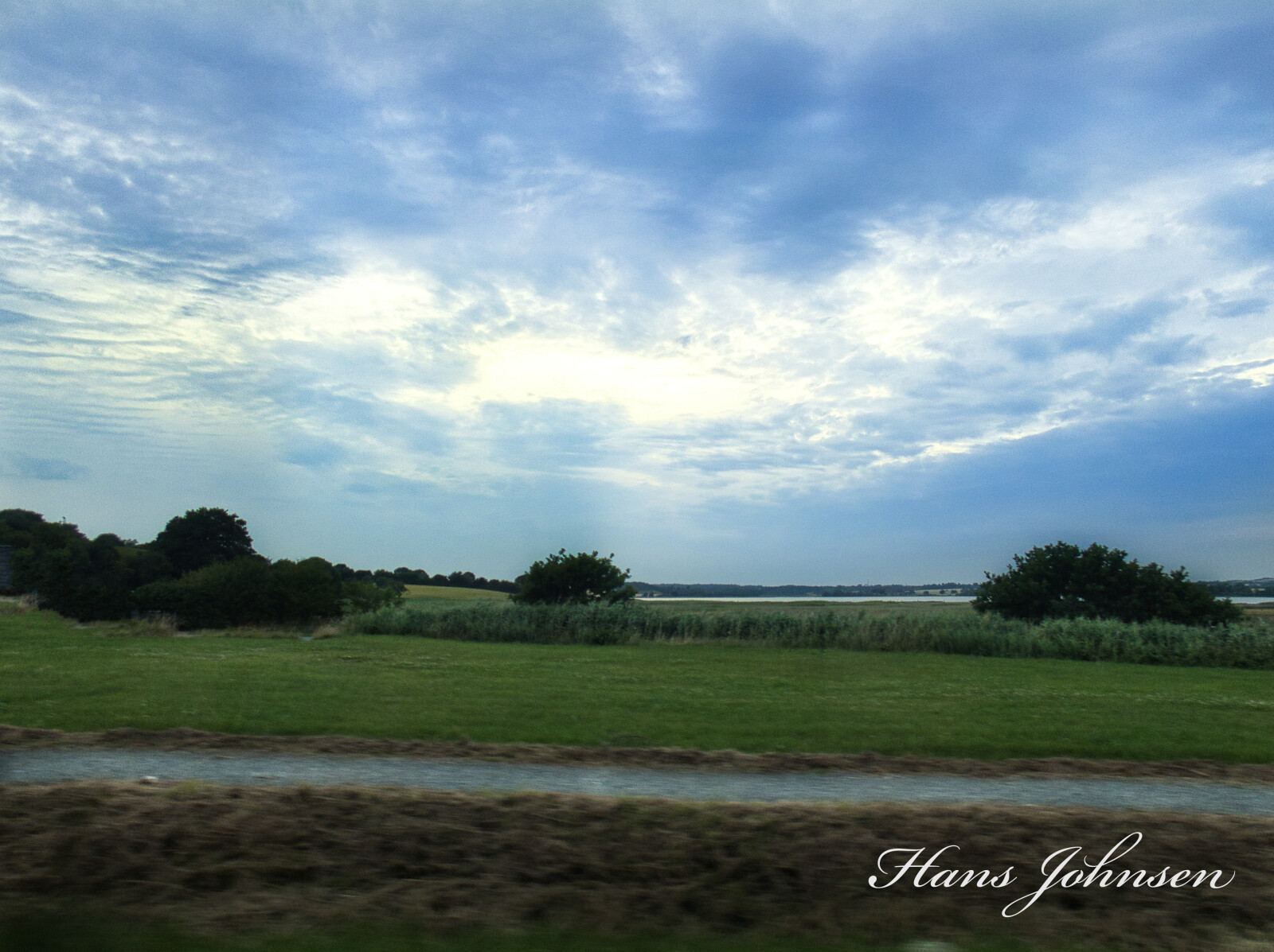 Billedet er taget ved Hejlsminde , ud af en kørende bil 14-7-23,det er kun redigeret med farvene, en flot himmel