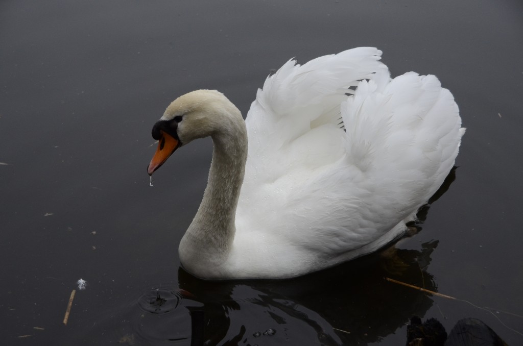 Så kom svanen, den har en fin positur og skarpheden ser fin ud. Lyset er lidt mørkt, her snyder din lysmåler dig en smule, fordi det er en hvid fugl. Så her skal man korrigere lidt ved at sætte +