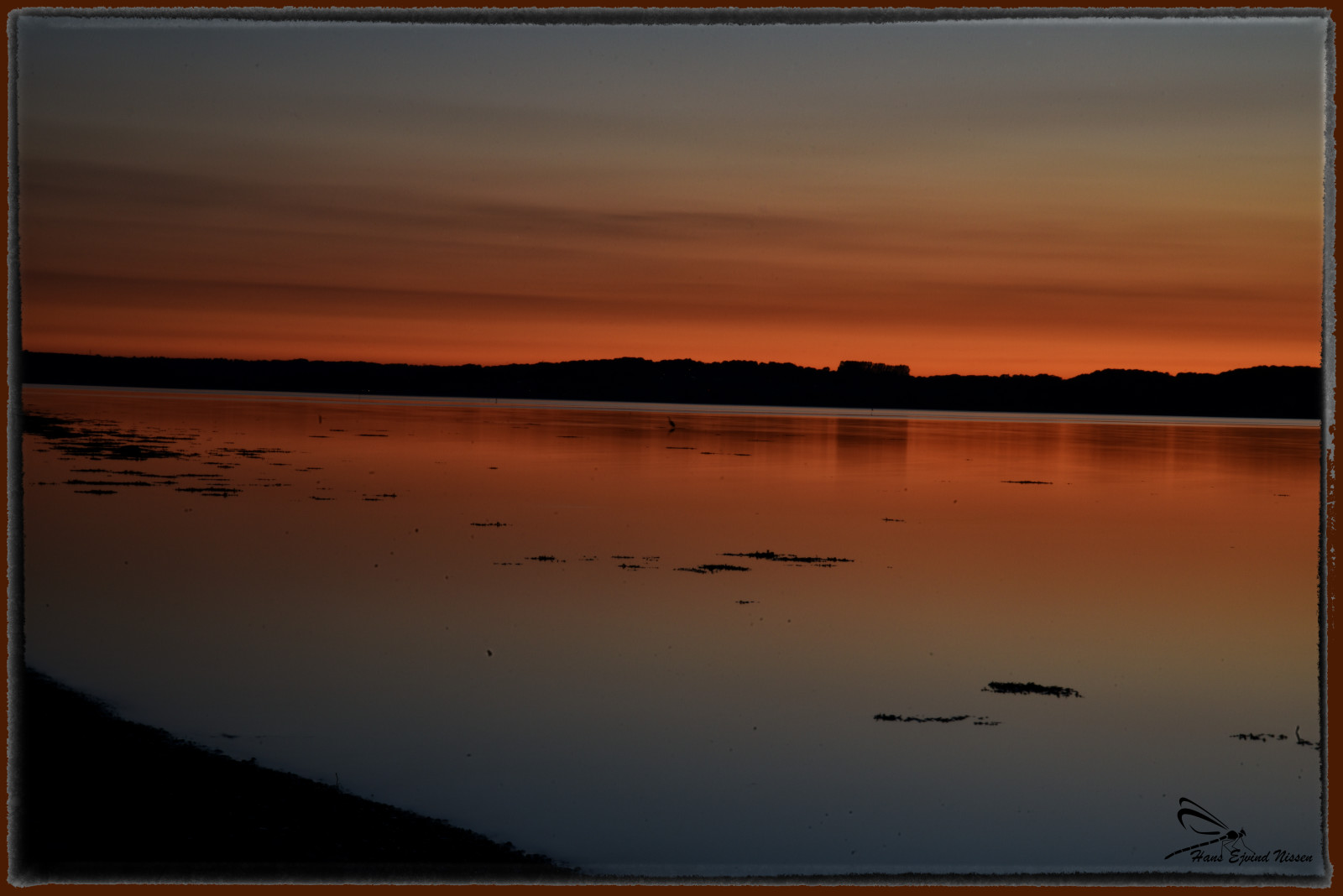 midt i billedet står der en Fiskehejre