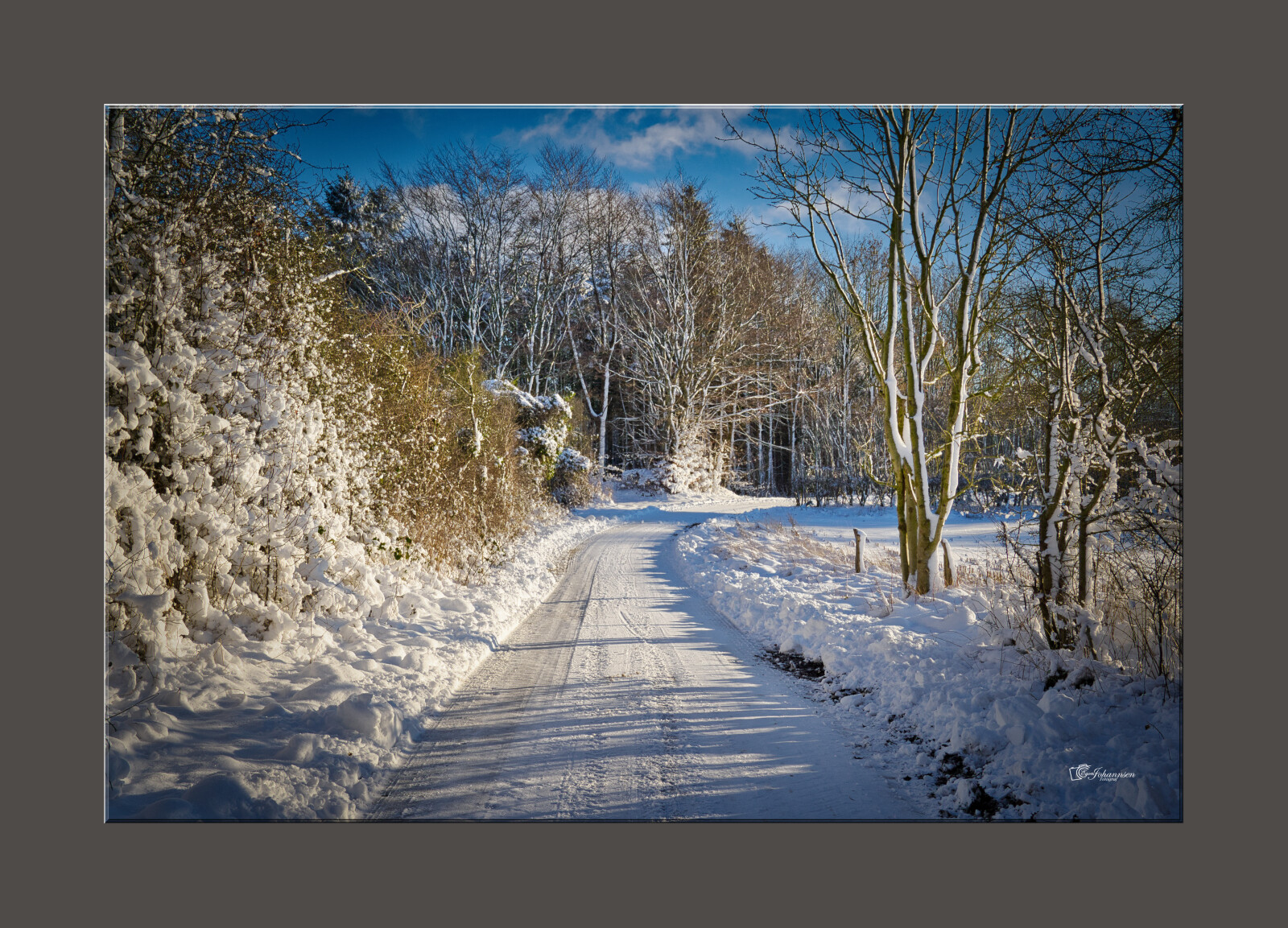 I dag fredag den, 16 december var vejret så flot, at man ikke kunne gå en tur, uden at tage billeder. Billedet er taget i Rundemølle ved Genner.