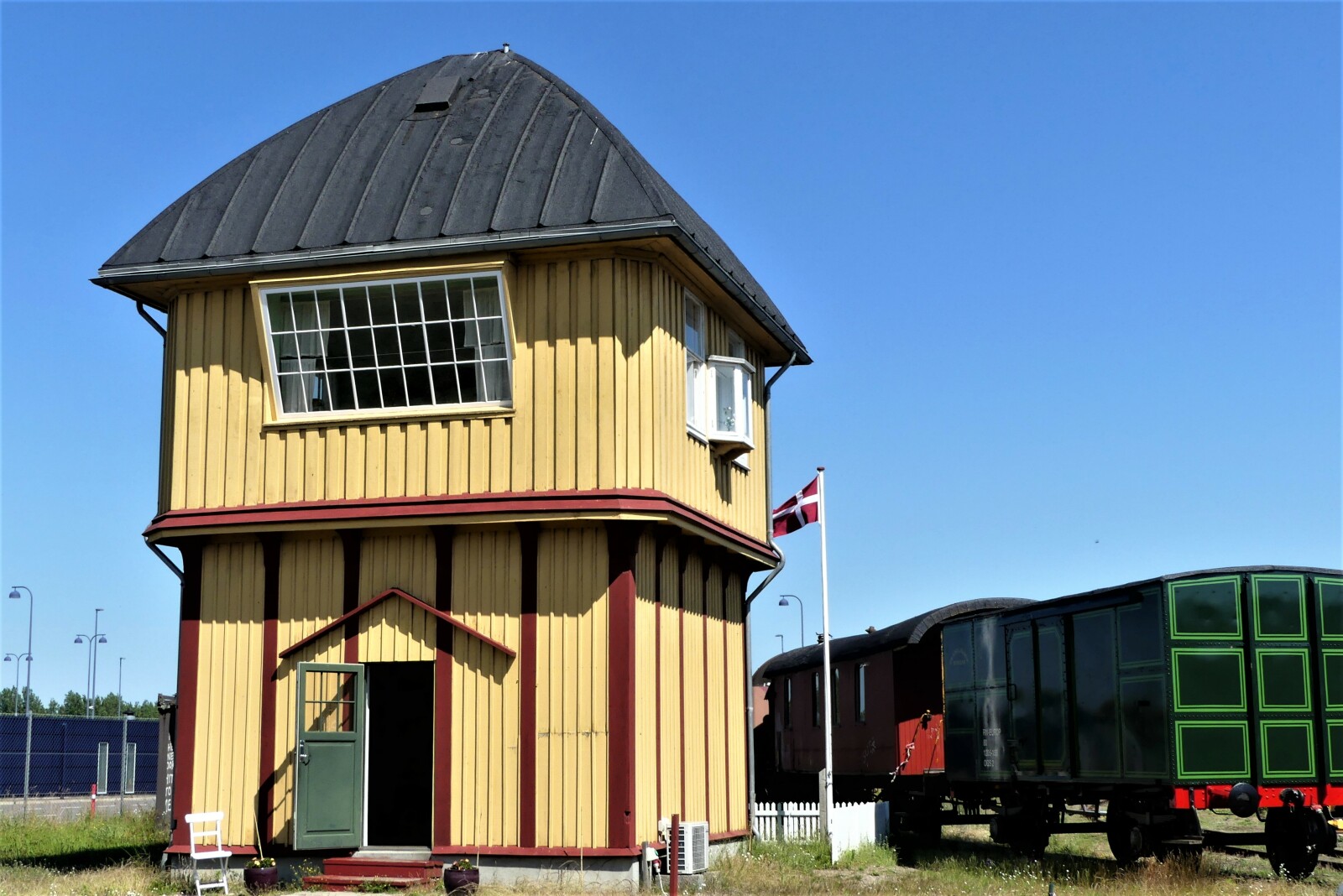 DSBs kontroltårn med kælenavnet "Det Gule Palæ" spillede en væsentlig rolle i Olsen-banden på Sporet i 1975.Det blev senere dømt til nedrivning, men reddet af ildsjæle og flyttet til Falster. Det kan i dag i renoveret udgave ses i Gedser Remise.