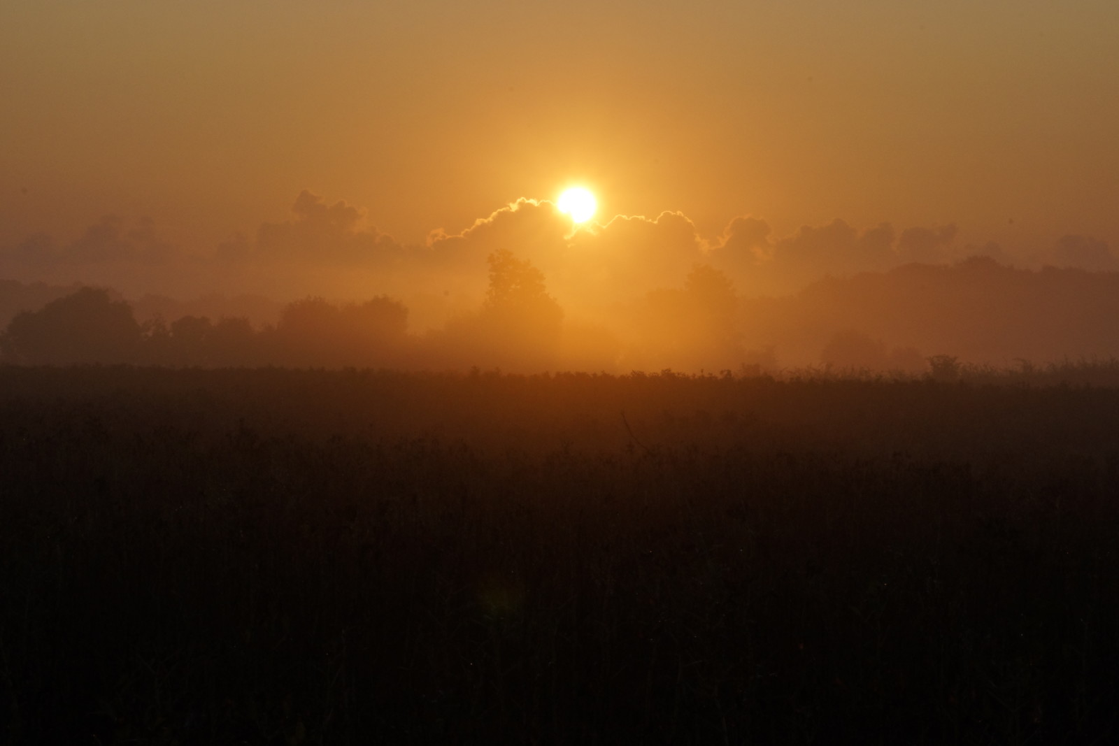 En tidlig sommer morgen hvor solen skinder gennem morgen disen