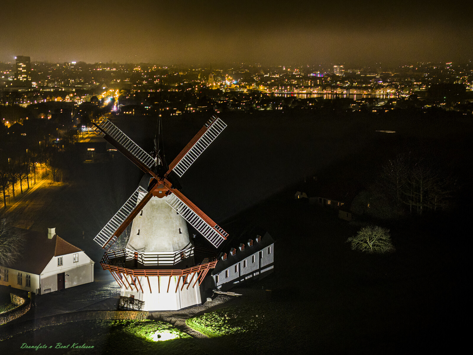 #Dybbøl mølle 3x natbillede drone