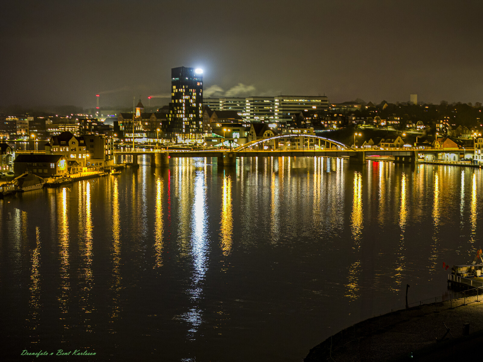2025 feb 01 Sønderborg havn natbillede 3x fra slottet drone
