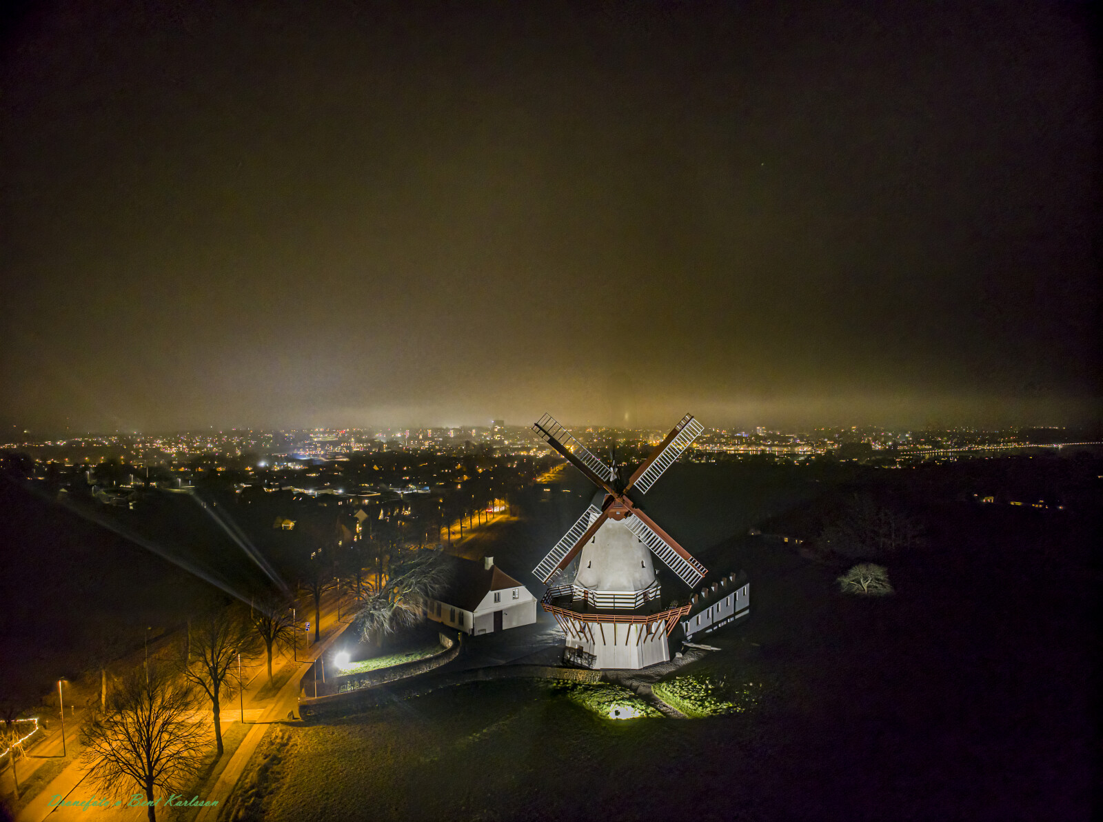 #Dybbøl mølle natbillede vidvinkel drone