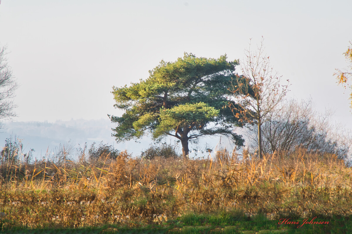 ved ydre dam ved Haderslev ,man kan skimte dammen i baggrunden,hvor det er diset.