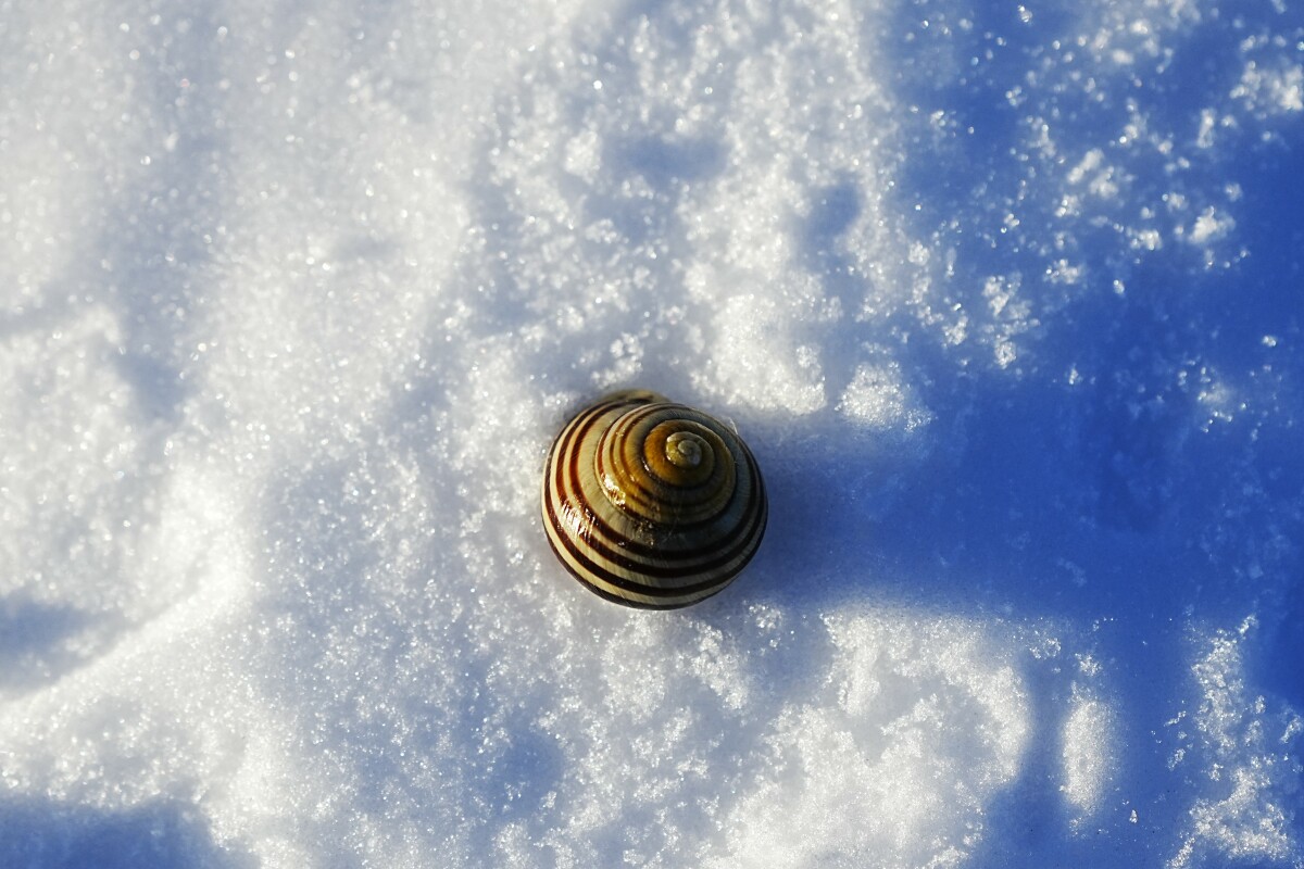 En snegl på afveje i sne