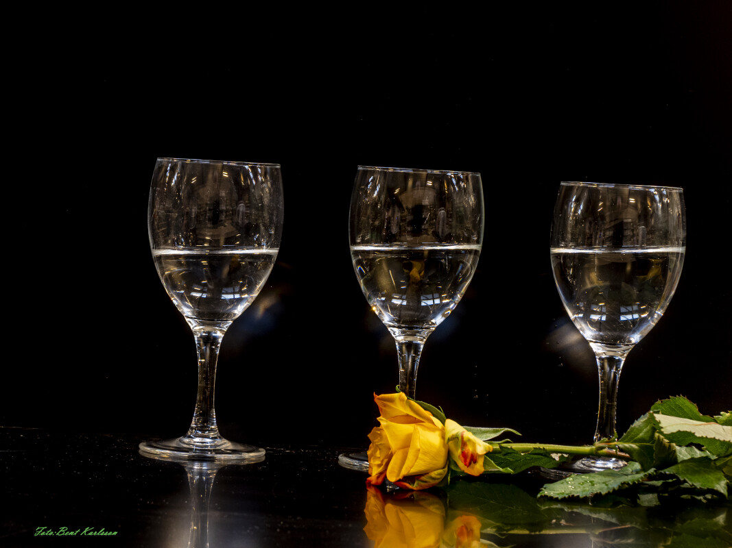#vinglas#vand#horisontlt#rose#gul#studiebillede#stilleben
