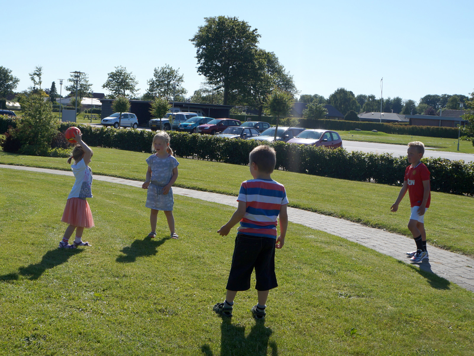Her er min fætters og kusines børn ved, at lege med bold. Jeg må indrømme, at efter billedet blev taget, hoppede jeg selv med i legen ;-)