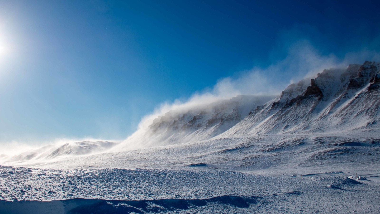 Stadig vindstille på landjorden, men 15 min senere stod himmel og hav i et.