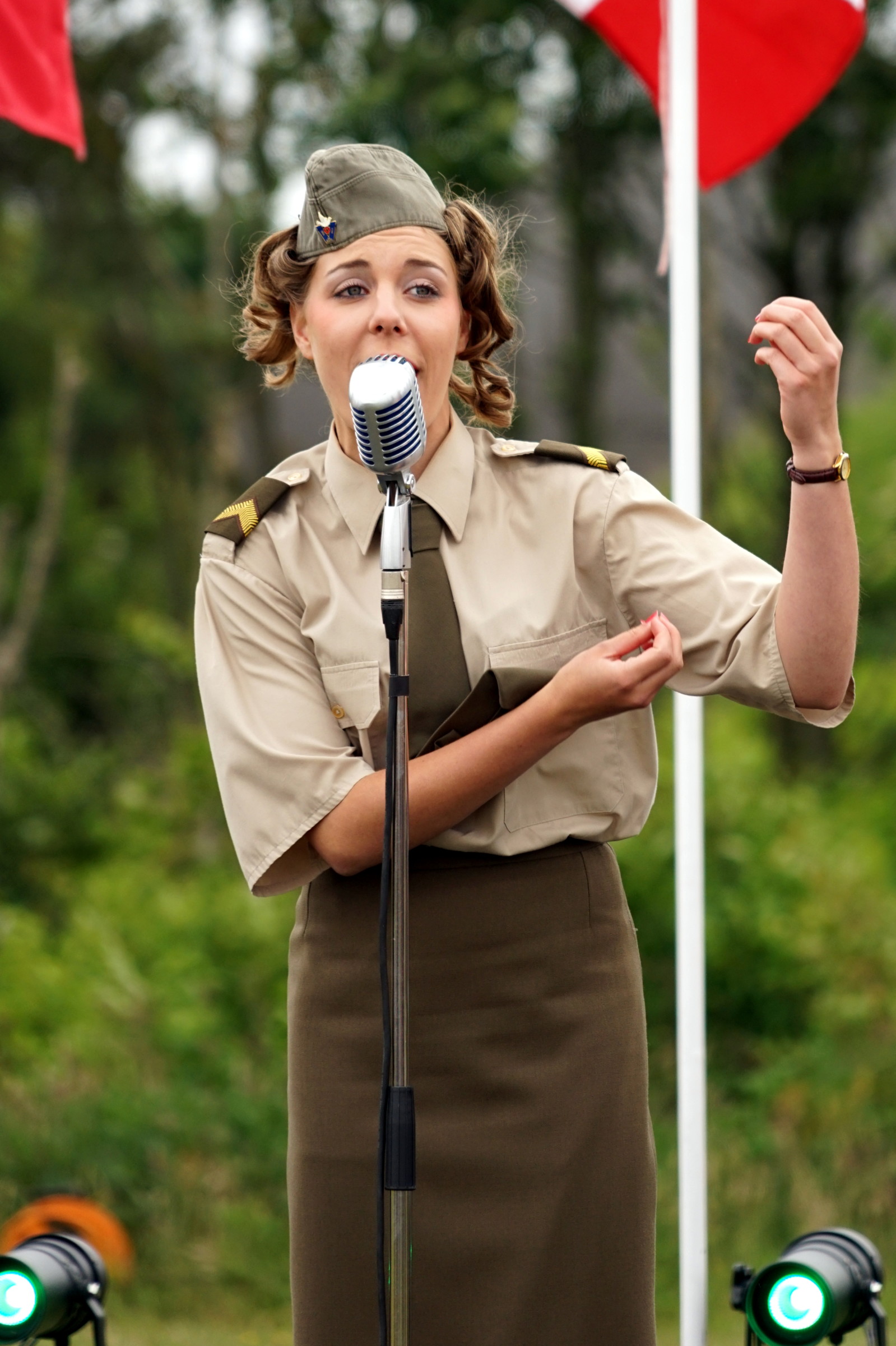 En syngende millitær lady.