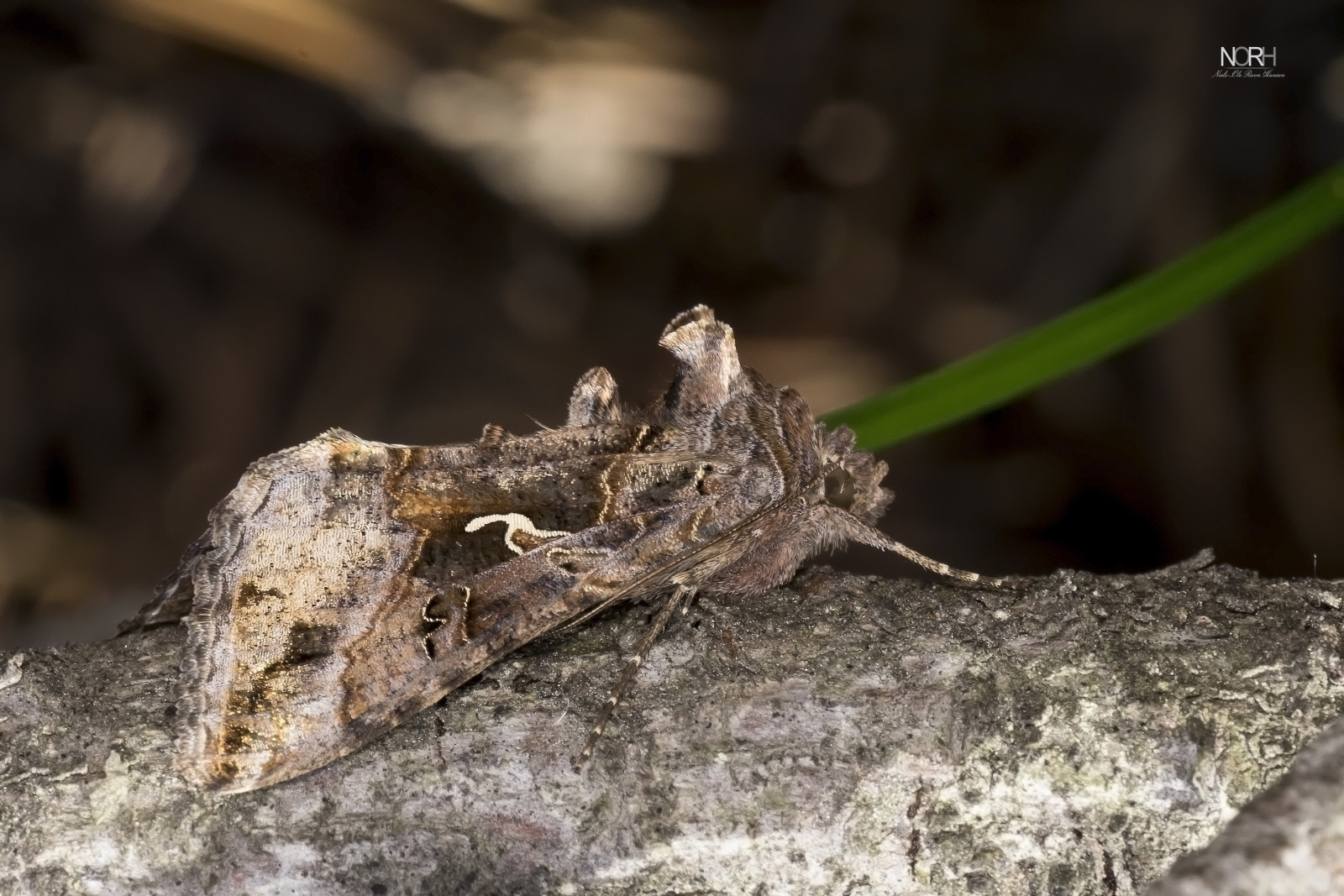 Gammauglen, der er en halv stor natsværmer, er en sand mester i camouflage og den tror selv på det, idet den bare blev siddende, selvom jeg rykkede tættere og tættere på med kameraet. En meget smuk flyver. ;-)