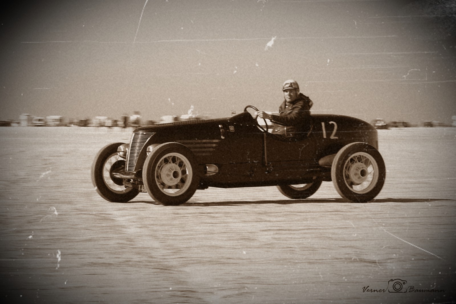 Gammel veteran racer bil på Rømø strand. Lavede denne her om til en "sort/hvid" ,med en filter til at lave billeder "gamle". Så de for div. ridser .