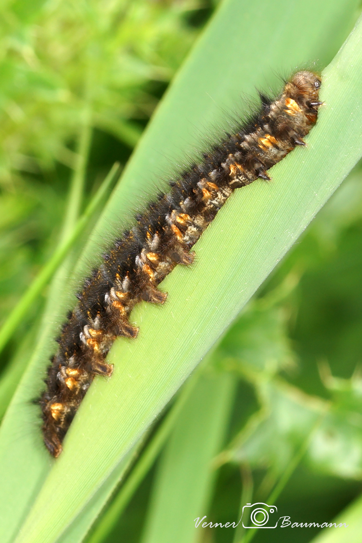 Jeg er ikke helt tilfreds med den. Den virker lidt uskarp . Det kan være på grund af bevægelsen fra vinden, eller alt det hår på larven ? Men i forstørrelsen ser den lidt tydeligt ud ....