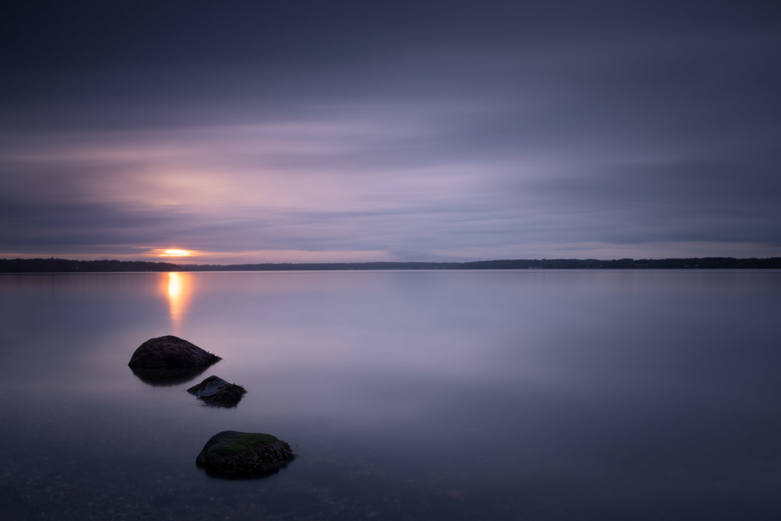 Det lysnede langt ude i horisonten, så vi stoppede op og blot ventede på at lyset skulle finde sin vej gennem skyerne. Farverne blev mere intense og frem kom et kort lille glimt inden lyset forsvandt med solen.