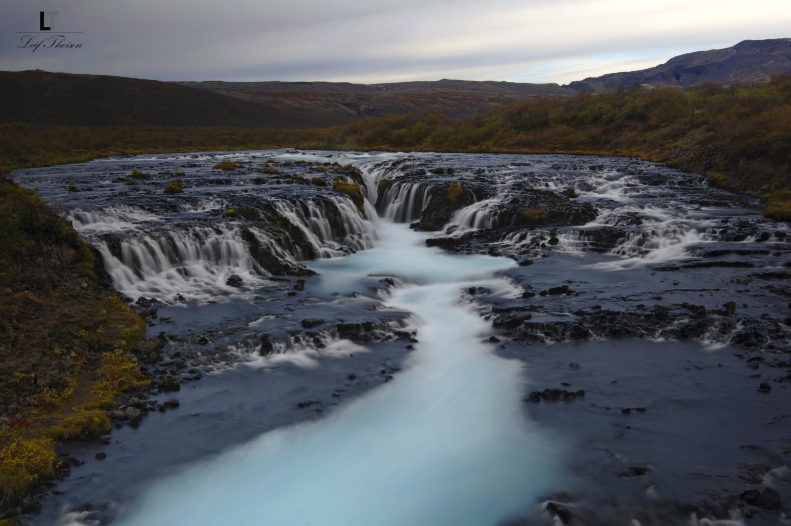 Bruarfoss hedder faldet her. Og Henning, vandet er virkelig så blåt, omend mere blå eller turkis når du ser det i virkeligheden, den lange lukker giver faktisk et lysere look pga. skummet.
