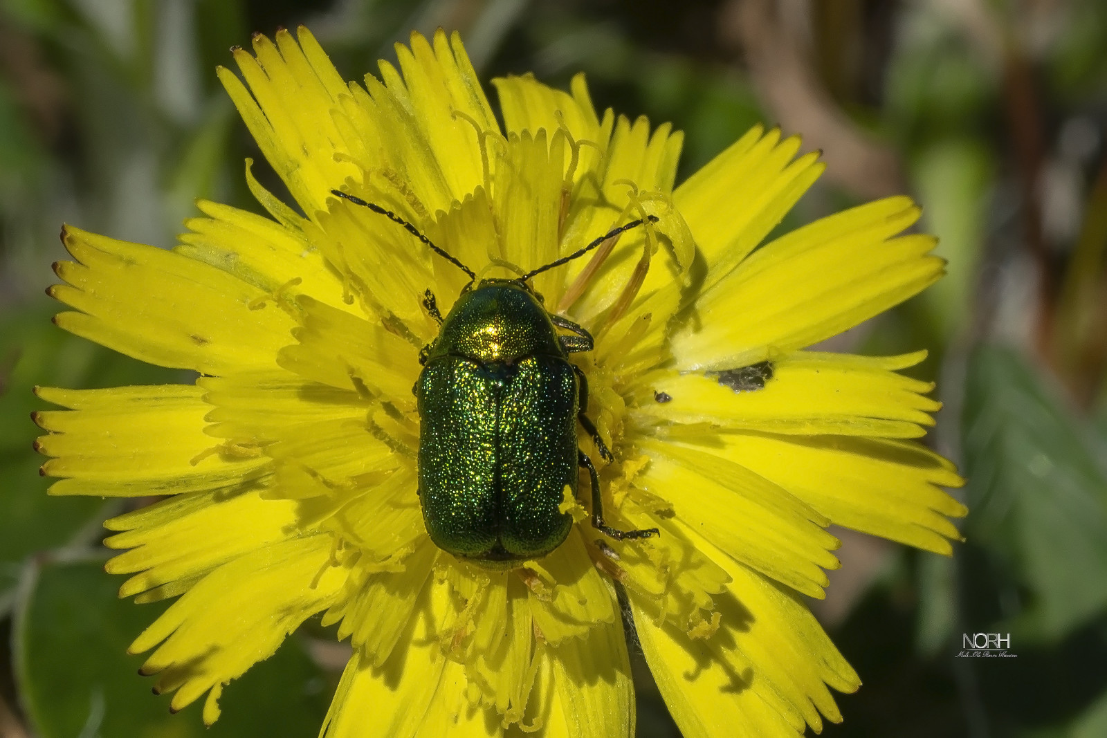 En grøn, relativ sjælden bille her i DK. Der søger åbne arealer eller skovlysninger hvor den/de sidder meget i de gule blomster. Igen et skud fra Lerskov plantage.