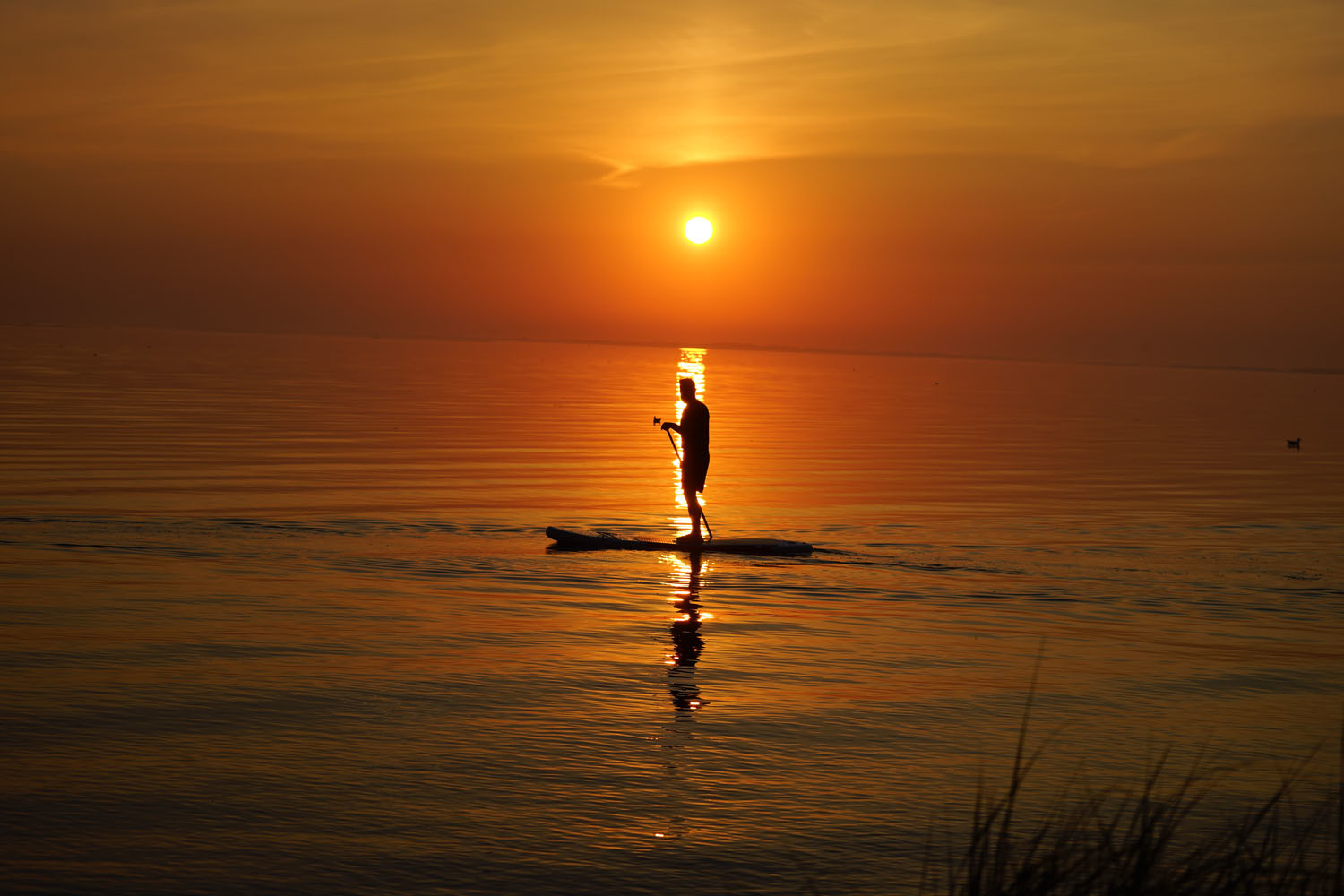 Billedet er taget fra stranden ved Sandager Næs hvor et ægtepar kom ind fra vandsiden på hver deres bræt
